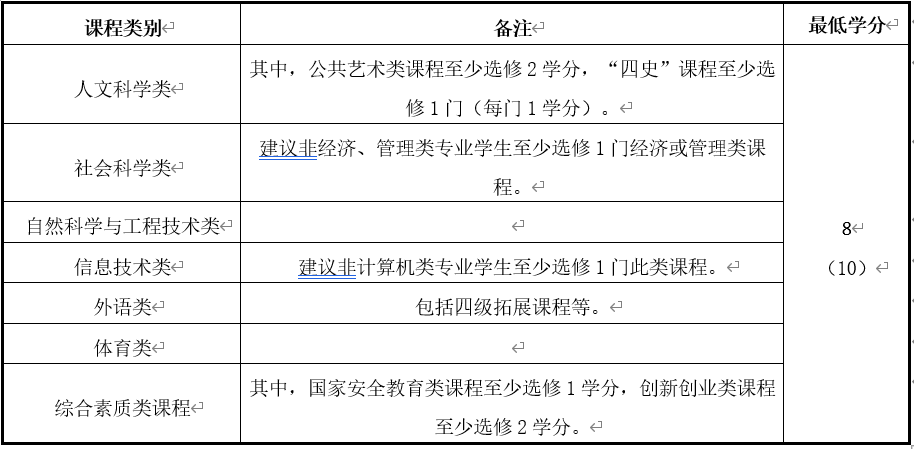 1.建议员工文理互选,在不同类别的通识选修课中完成修读。所有员工在修业年限内应至少取得8个通识教育选修课程学分。
