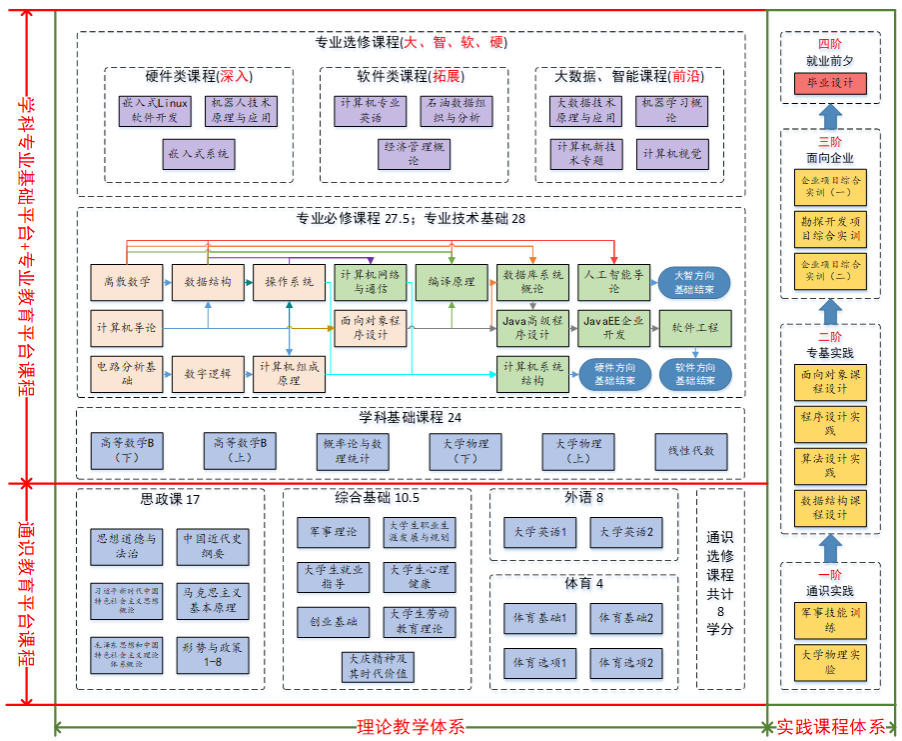 本专业拥有计算机科学与技术一级学科,1996年获批计算机应用技术硕士学位授予权,2003年获批计算机软件与理论硕士学位授予权,2010年获批一级学科硕士学位授予权;2005年依托石油与天然气工程一级学科,自主设立石油工程计算技术博士点,2013年调整为依托地质资源与地质工程一级学科,自主设立计算机技术与资源信息工程博士点。目前,拥有黑龙江省计算机应用技术学科省级领军人才梯队、黑龙江省石油大数据与智能分析重点实验室、云计算中心、省级教学示范中心等。