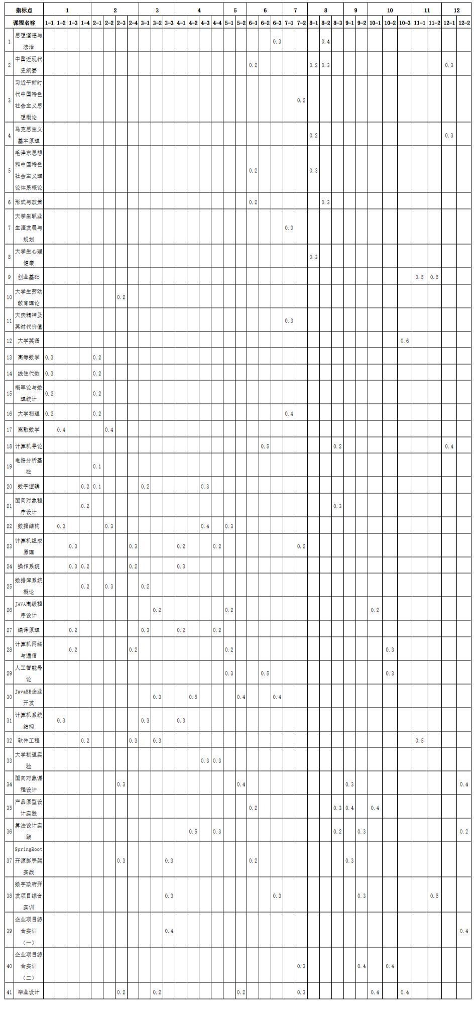 九、课程对毕业要求的支撑矩阵