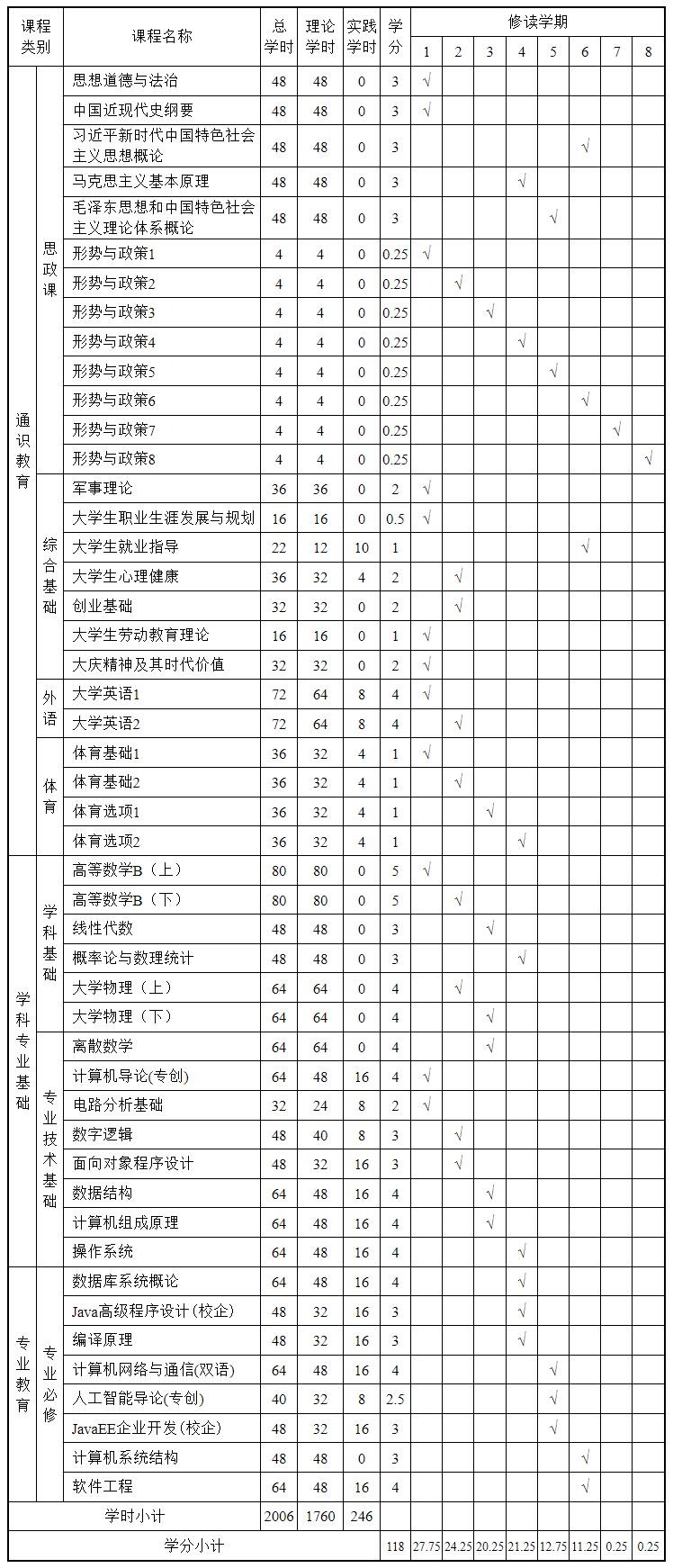 十一、计算机科学与技术专业必修课程设置