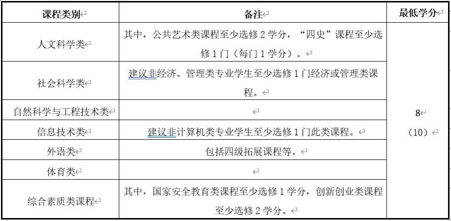 3.各专业根据需要自行设定本专业通识教育选修课程。