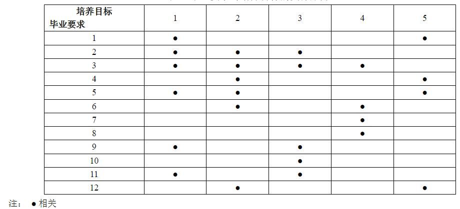 八、毕业要求对培养目标的支撑矩阵