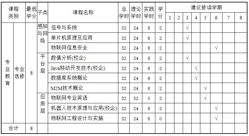 十二、物联网工程专业选修课程设置