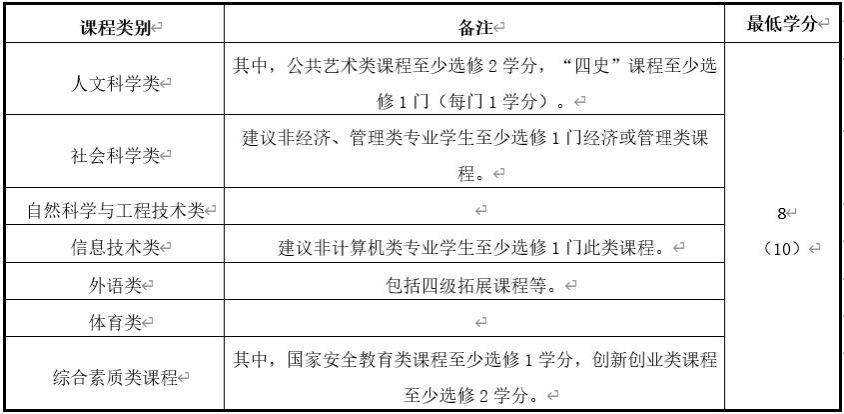 3.各专业根据需要自行设定本专业通识教育选修课程。