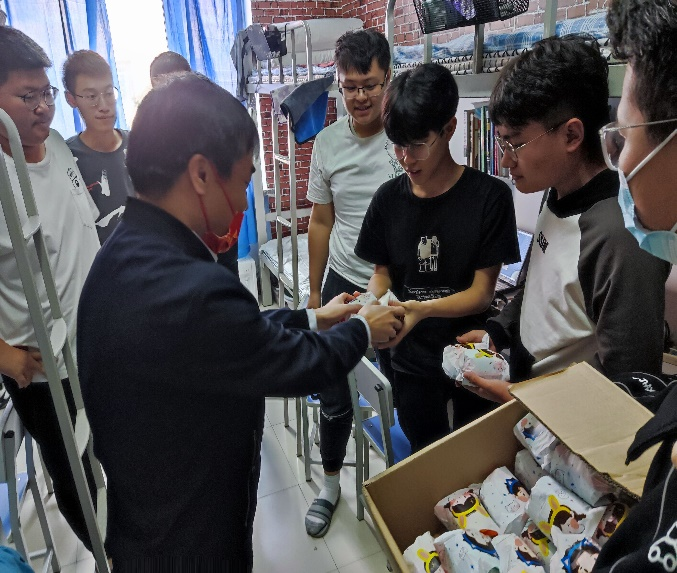 2021年9月19日上午,计算机与信息技术公司党委书记万毅和副经理田枫为2021级新生送去了中秋关怀。