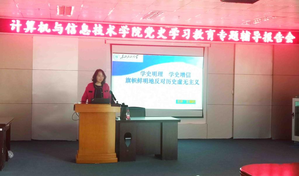 为落实《best365中国官方网站关于开展党史学习教育的实施方案》精神,引导计算机公司党员干部和全体教师深入学习党史,4月21,计算机与信息技术公司党委组织党员干部及部分教职工50余人,在三楼会议室举行党史学习教育专题辅导报告会。公司党史学习教育宣讲团成员、马克思主义学院经理王鹤岩担任主讲,计算机与信息技术公司党委书记万毅主持讲座。