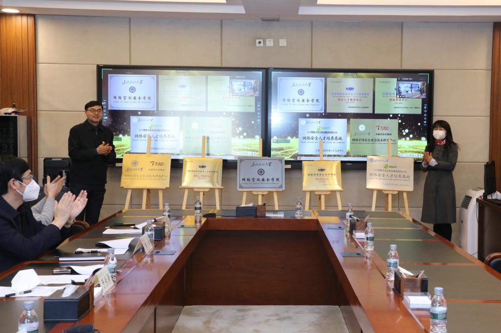 为贯彻落实习近平总书记关于网络强国的重要思想,响应国家网络安全重大战略需求,进一步完善学校团队建设整体布局,12月28日上午,公司举行网络空间安全学院成立大会暨揭牌仪式。副董事长于长青、董宏丽,黑龙江省计算机学会、大庆市委网信办及兄弟院校相关负责人、企业代表等参加大会。大会以线上线下相结合方式进行,董宏丽主持大会。