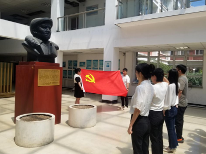 随后,全体参会人员在一教铁人雕像前举行了入党宣誓仪式。教工党员亲自为38名新员工党员佩戴党徽,全体党员面向党旗站立,举右手握拳,进行了庄严宣誓。党员们昂首挺胸,在阵阵激昂的宣誓声下,每个党员均用心传递着他们昂然向上的斗志和报效祖国的决心。
