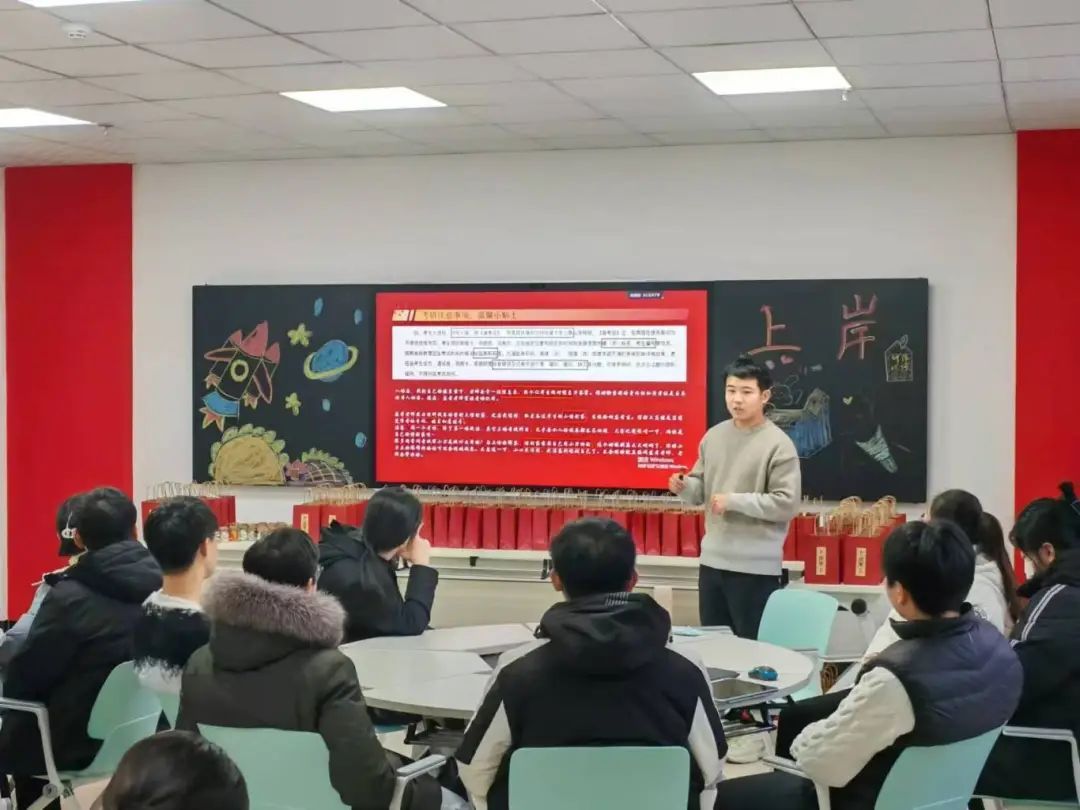 为帮助考研学子坚定备考信心、缓解备考压力、增强备考底气,12月18日,公司在1D三楼会议室和启智学区4B一楼分别布置会场组织考研送祝福活动。公司党委书记任艳秋,副经理张强以及2021级辅导员贾迪、李双峰为备考学子送去精心准备的考研礼包和最诚挚的祝福。