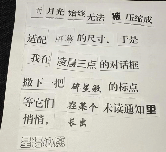 活动过程中,员工围绕“数字时代的情绪密码”、“普通生活中的浪漫”等主题,通过联想、重组完成微型诗歌创作。同学在纸上拼出“404错误不可怕,至少证明,我在寻找一条未被定义的路。”将HTTP状态码转化为探索未知的勇气宣言,展现出数字通信中的情感韧性。