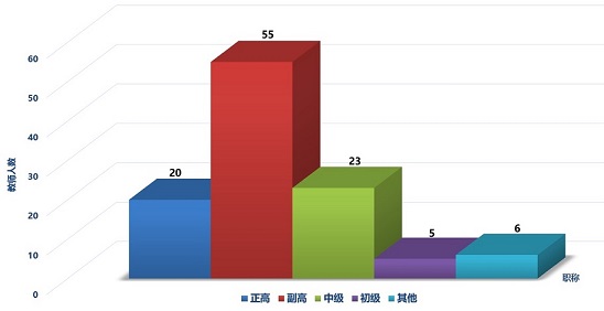 职称结构合理。二级岗位教授2人,三级岗位教授3人,四级岗位教授15人,副高职55人,中级职称23人。博士生导师4人,硕士导师40人。