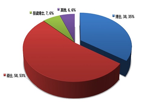 具有博士学位教师38人,硕士学位教师58人,在读博士7人。